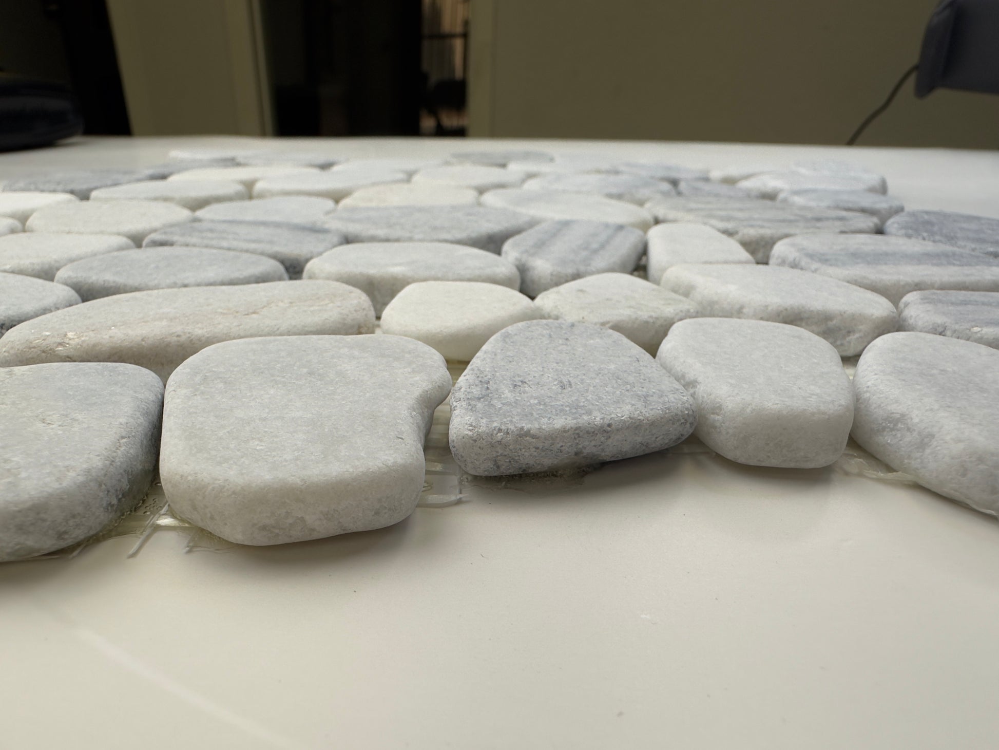 Elevate your space with our Sliced Pebble Tile with elegant cloudy color, a perfect blend of nature and contemporary design. Each 12"x12" tile features carefully sliced natural pebbles, arranged to create a smooth and uniform surface while maintaining the organic shapes and textures of the stones. The black matte finish adds a sophisticated, understated elegance to any room, making it a versatile choice for both indoor and outdoor projects. 5 square feet coverage per carton. Pack of 5 , $13.65/pc